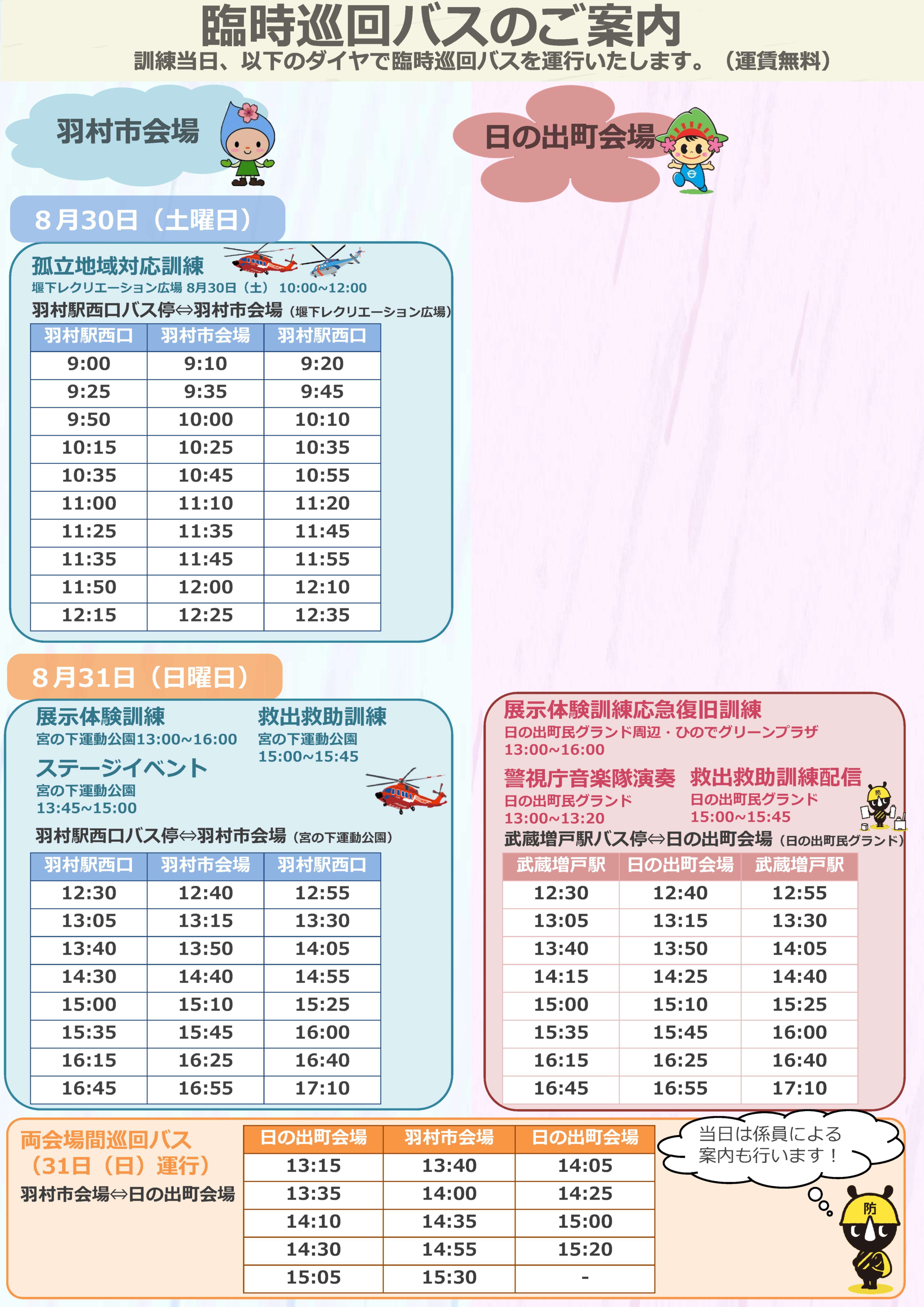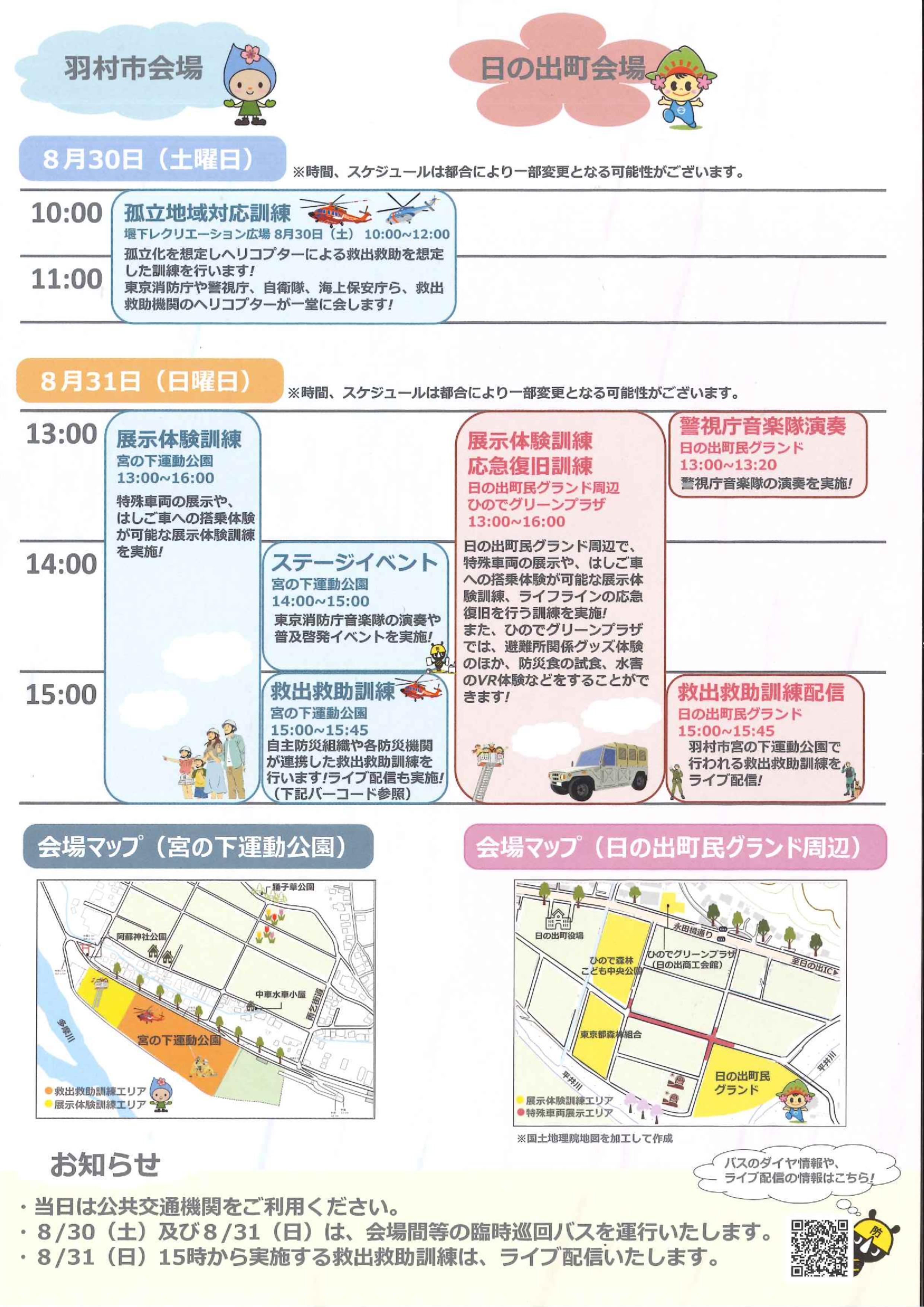 ※当日、日の出町で開催される訓練のみお知らせします。