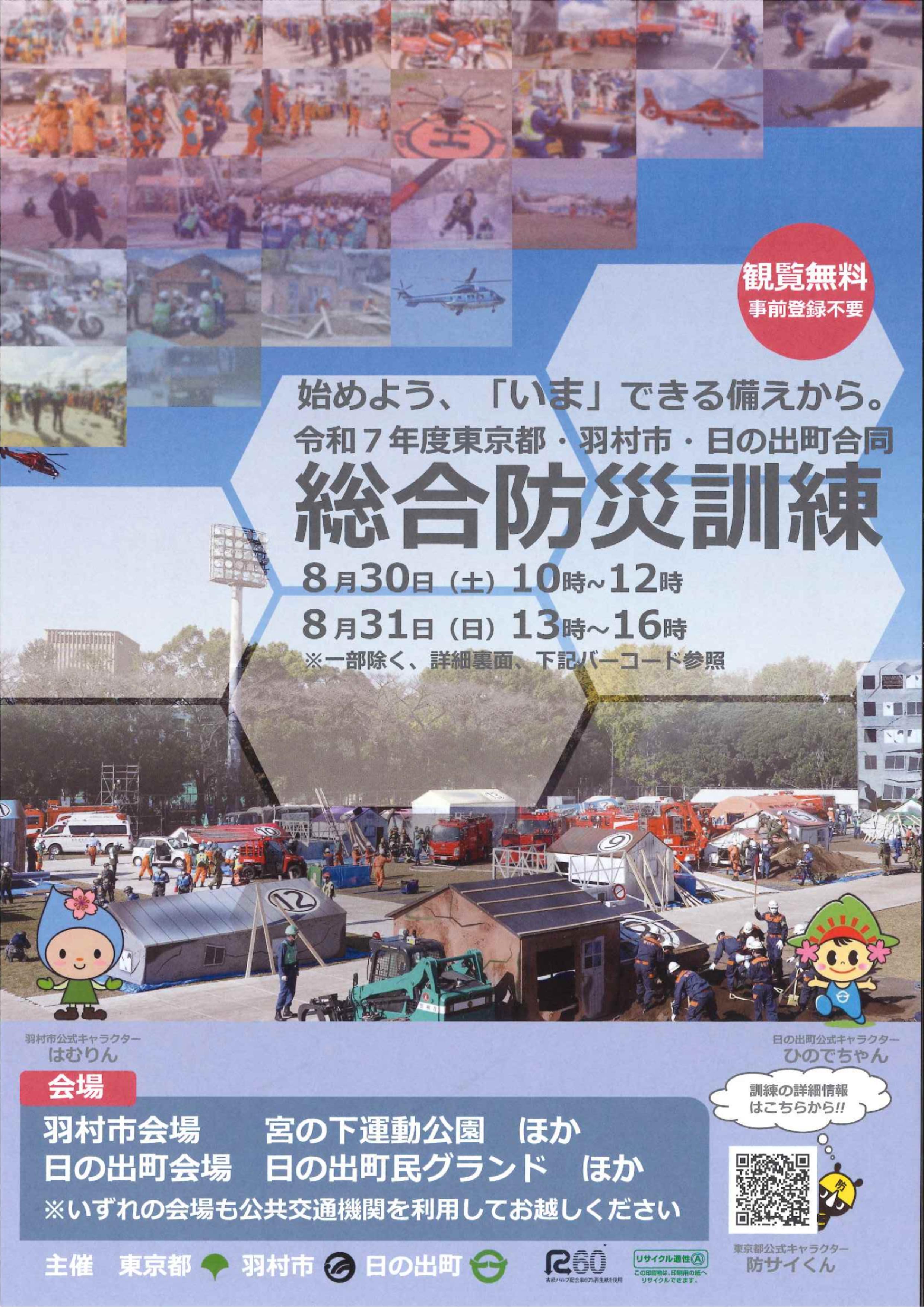 始めよう、「いま」できる備えから。令和7年度 東京都・羽村市・日の出町合同総合防災訓練を実施します!